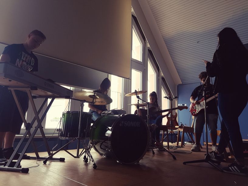 Unter der Leitung von Herrn Stuber werden neue Songs erarbeitet. Im Programm finden sich momentan starke Stücke von Adele, Cranberries, Kings of Leon, etc.